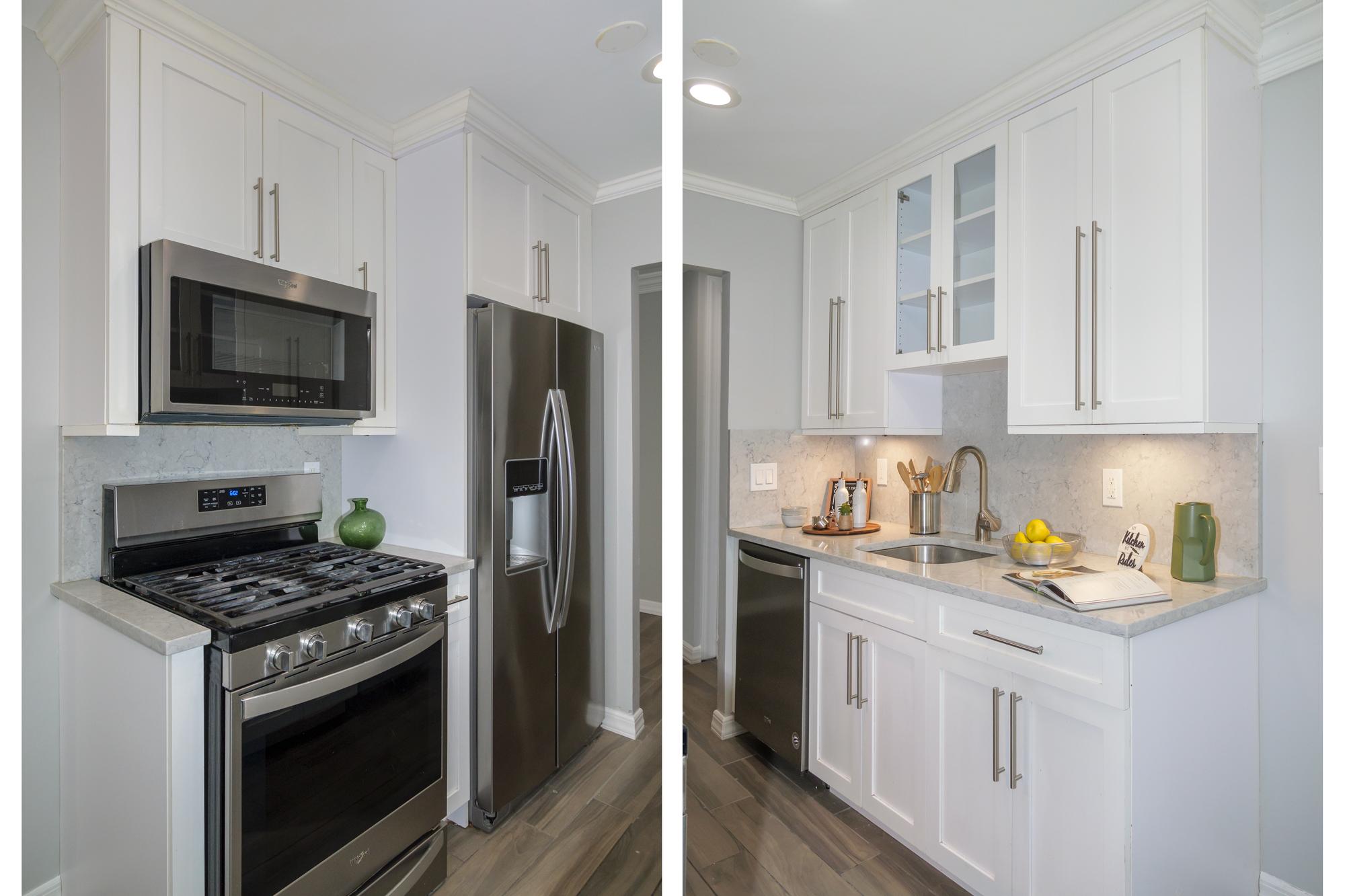 Luxury one- and two- bedroom apartment residences. We proudly feature quartz kitchen countertop and backsplash, shaker-style wood cabinets, undermount LED lights. Gourmet kitchen with Whirlpool Gold Series stainless steel appliances, modern vinyl plank floors and/or gray carpeting. Ceiling fans, hi-hats, air-conditioning, window treatments, stonington gray wall paint. Hotel-style bath: subway tile/marble tile floor, quartz vanity, frameless shower doors. Lovely ledgestone exterior. Professional landscaping.